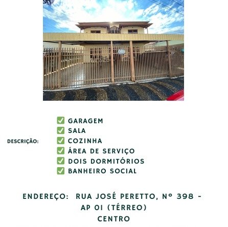 ALUGA-SE APARTAMENTO NO CENTRO DE SOCORRO – RUA JOSÉ PERETTO
