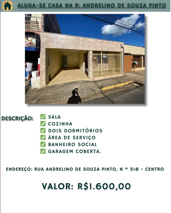 ALUGA-SE CASA NO CENTRO