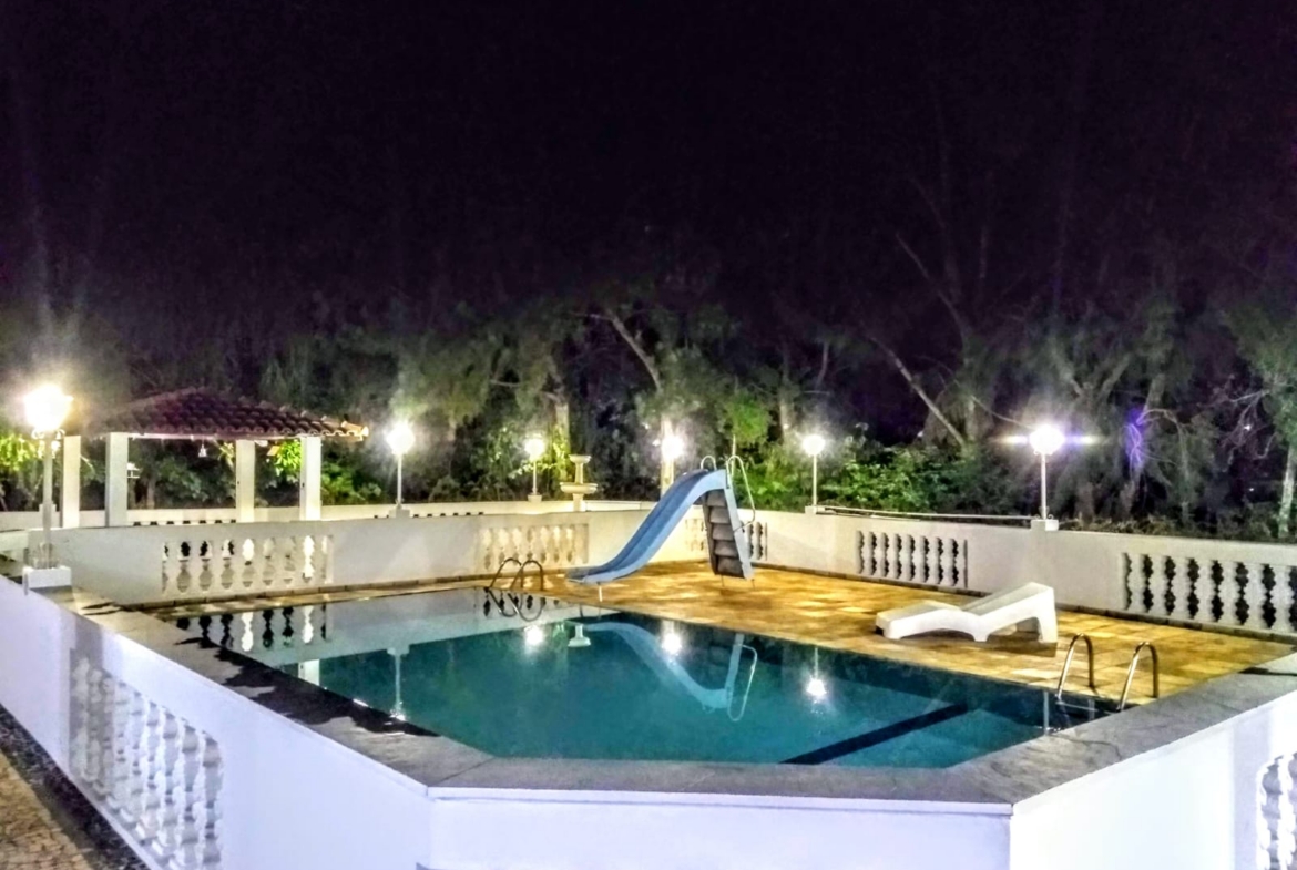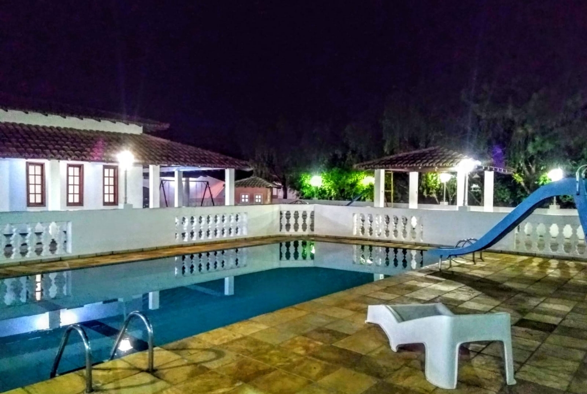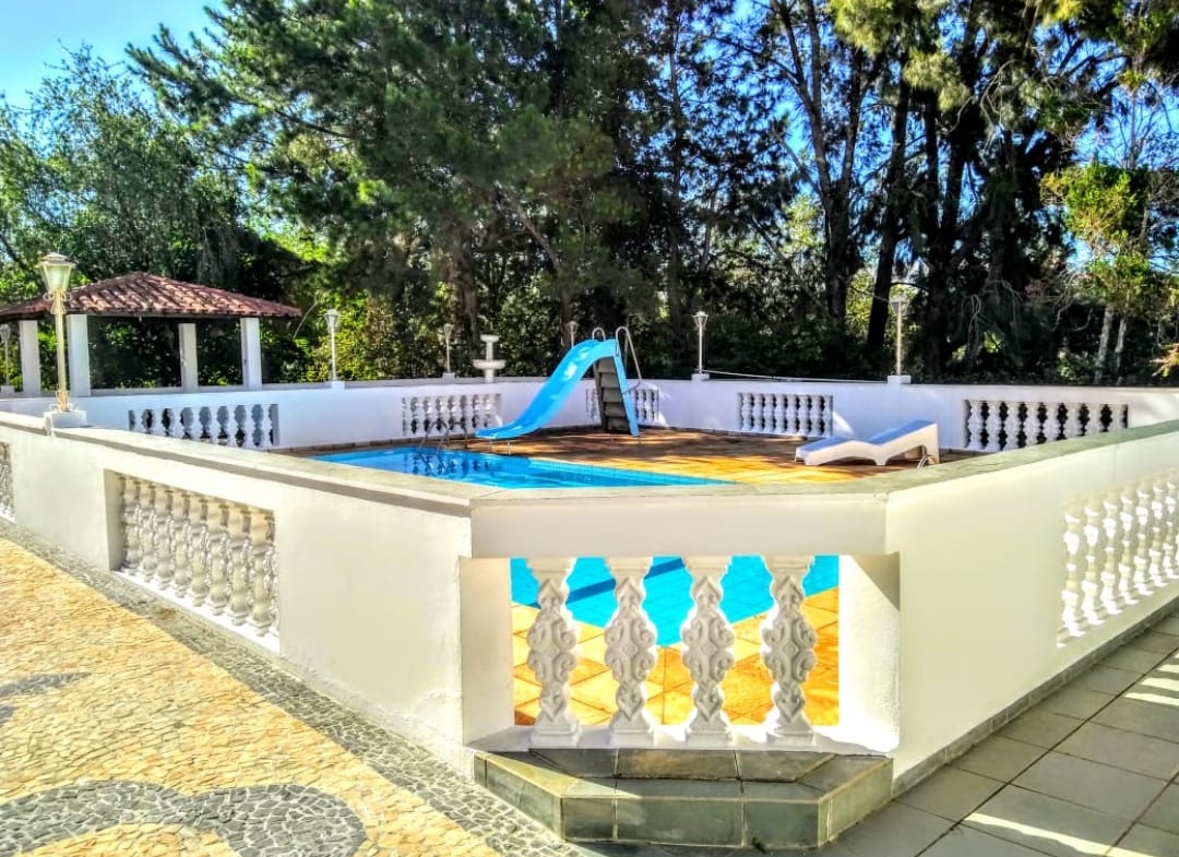 ✅ Piscina 10×5 em alvenaria, aquecida e com escorregador